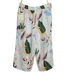 Womens Cynthia Rowley 100% Linen Pants Size 2X Cropped Floral Hawaiian Aloha