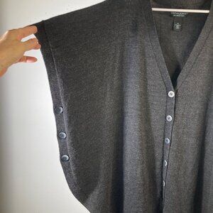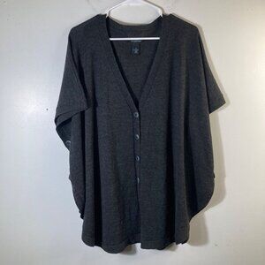 Womens Cynthia Rowley Merino Wool Sweater Poncho Gray Black M Wool Button Detail