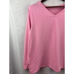 Women's D & Co. XL Bubblegum Pink Long Sleeve Shirt with Lace Detail on Sleeve C