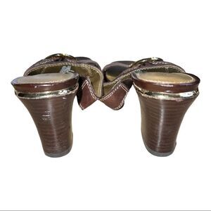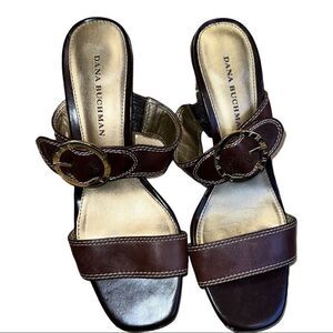 Womens DANA BUCHMAN "Evia" Brown Leather Slip On Sandals Block Heel Size 8M