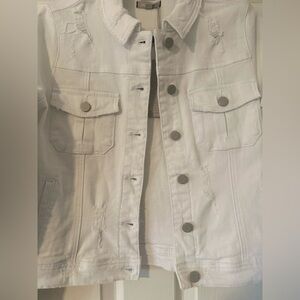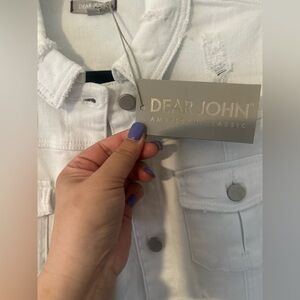 Women's DEAR JOHN White Distressed Jean Jacket.