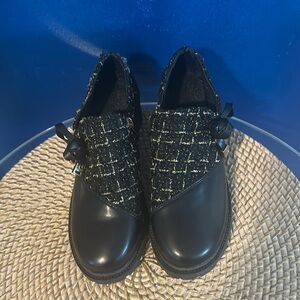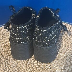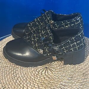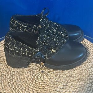 Women’s DG Leather Tweed Block Heel Preppy Booties Size 6.5