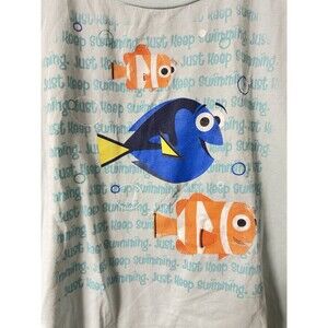 Womens DISNEY STORE Finding Nemo T-SHIRT Dory JUST KEEP SWIMMING Size XXL Blue