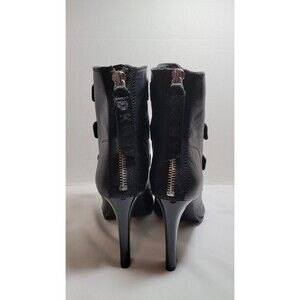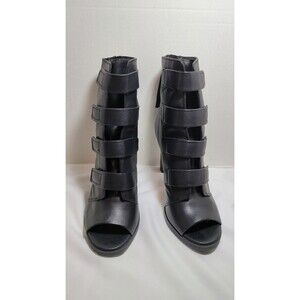 Women's DKNY Blake Strappy Leather Peep Toe Stiletto Booties Lug Bottom Size 11