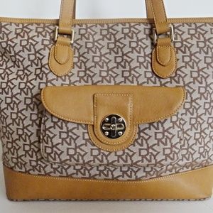 Material: DKNY Signature jacquard & Leather