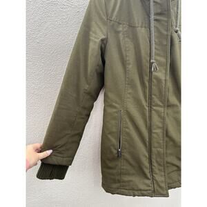 Womens DKNY Jacket Size XS Green Hooded Hidden Zip Up