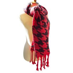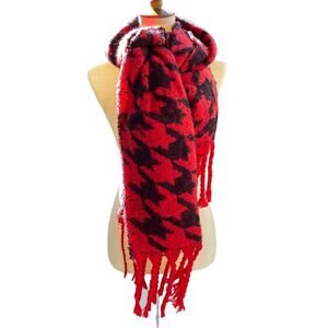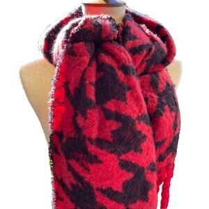 Women’s DKNY One Size Super Cozy Oversized Houndstooth Blanket Scarf Red/Black