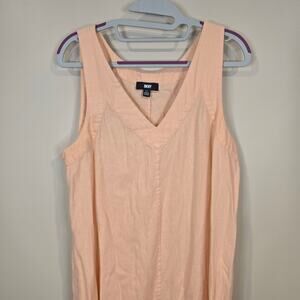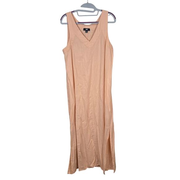 Women's DKNY Peach V-Neck Linen Blend Maxi Dress Side Slits | Size Medium