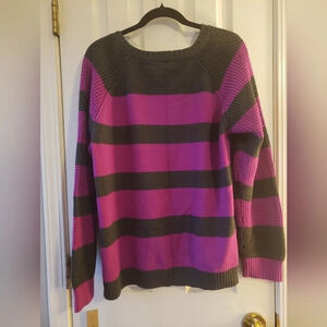 This is a great pink and gray sweater in good condition. Relaxed fit.