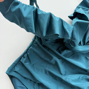 Women's DKNY Teal Ruffle One Piece Swimsuit S