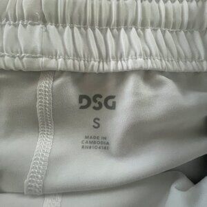 Designed for athletic performance, this DSG skort combines comfort and style. The elastic waistband ensures a secure fit, while the lightweight fabric allows for ease of movement. Ideal for sports and casual activities. • Elastic Waistband • Lightweight Material • Pure White Color • Made in Cambodia • Size S Waistband to bottom hem = 14 inches Size: S