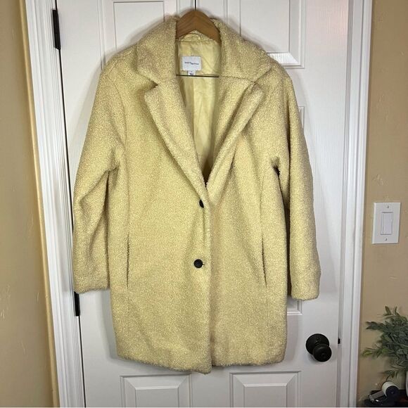 Womens Daily Ritual Teddy Bear Fleece Jacket Size Medium Light Yellow