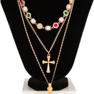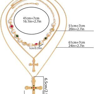 Features: This multilayered necklace features delicate pearls symbolizing purity and nobility, complemented by shimmering colored gemstones. The heart-shaped cross represents love and sacrifice, making it a special piece to wear for yourself or gift to someone special. Its lightweight, easy-to-wear design is perfect for daily wear, adding a touch of elegance to any outfit.
