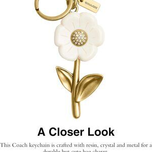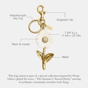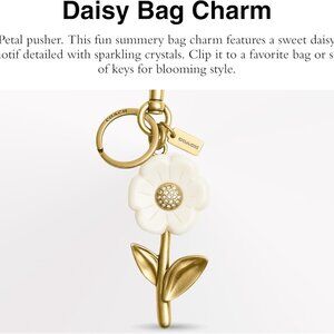 Features: Adorable daisy design with sparkling crystals, crafted with resin, metal, and crystals for durability and cute detail. Includes a sturdy split ring and a dogleash clip to attach easily to bags or keys.
