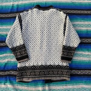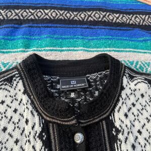 Women's Dale of Norway White Black Wool Norwegian Long Cardigan Sweater Sz Small