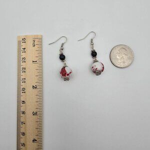 Women's Dangle Drop Hook Marbled White/Red Beaded Fashion Jewelry Earrings