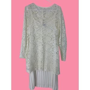 Womens Dani & Nicole Drop Waist Lace Tee Dress VTG 90s Church Cottagecore 5243
