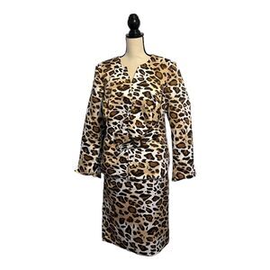 Women's Danillo Leopard Animal Print Belted Lined Skirt Suit Plus Size 16W Brown