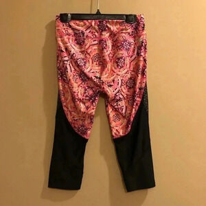 Womens Danskin Now Capri Leggings Pink Boho Pattern Sz M Fitness Gym Yoga