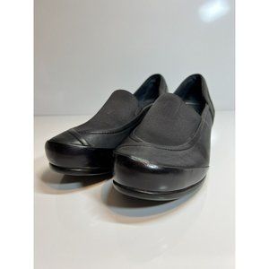 Women’s Dansko Black Leather Comfort Clogs Stretch Knit, Size 8 in US.