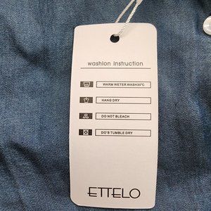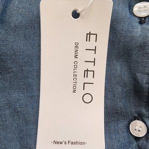 Women's Dark Blue Button Up Cotton Long Sleeve Lightweight Denim Shirt Size M