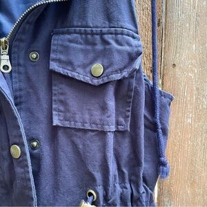 Womens Dark Blue Hooded Vest Utility Jacket Full Zip Pockets Size Small