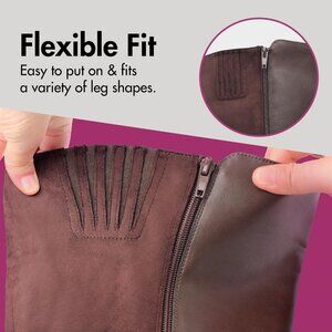 FIT: These boots are EXTRA WIDE in CALF size, and REGULAR in FOOT size. These tall riding boots have a hidden elastic band to ensure proper fit, and a full zipper for easy entry. Available in half size.