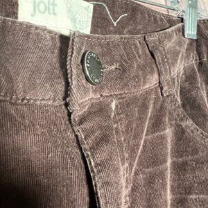 This is a womens Dark Brown Corduroy Jolt Pants In A Size 11. These pants are used with some color fade and peeling but still looks great.
