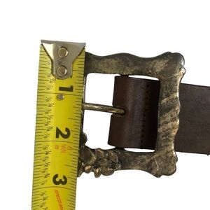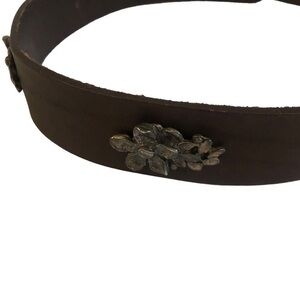 Women’s Dark Brown Leather Belt Flower Buckle Size Medium
