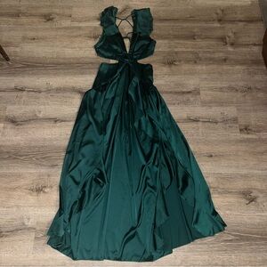 Women's Dark Emerald Green Formal Dress with Open Back