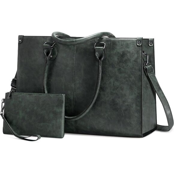 Women's Dark Green 15.6 inch vintage vegan leather and high-density Tote Bag