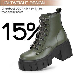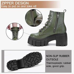 ⚡Women’s Dark Green Combat Lightweight Side Zipper Ankle High Heel Chunky Boots