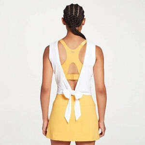 Brand new with tags! Super cute rib, texture, workout tank with unique tie closure! This tank can be tied loosely in back or more securely around the front.
