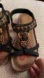 Stylish women's sandals featuring a chic dark navy and tan design. Rhinestones add a dazzle to this sandal. Perfect for casual outings and summer days. Worn once. Like new. Size 5