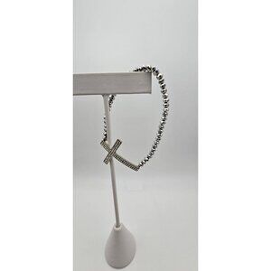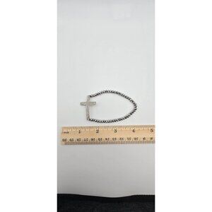 Women's Dark Silver Tone Rhinestone Cross Pendant Wrap Style Stretchy Bracelet