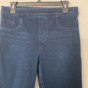 Pre-owned in excellent condition, these women’s dark wash jeggings combine the comfort of leggings with the classic look of denim jeans. Crafted from a soft-knit fabric, they feature hidden core shaping technology, a flattering high-rise fit, and 4-way stretch for all-day comfort.