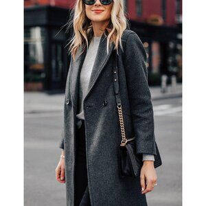 Women's Dark grey Winter Wool Coat Casual Notch Lapel Single-Breasted Peacoat