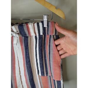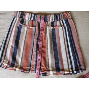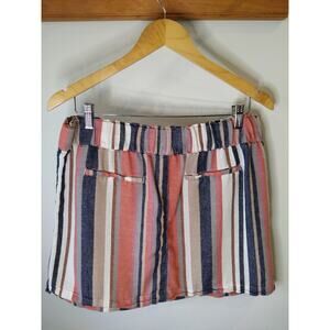 Women's Dash Striped Linen Blend Mini Skirt Size M Coral Navy Drawstring