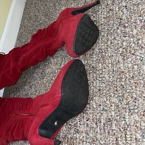 Womens De Blossom Collection Over The Knee Red Heeled Boots