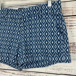 Women's Dear John Cuffed Chino Stretch Shorts Blue White Print Boho Size 29