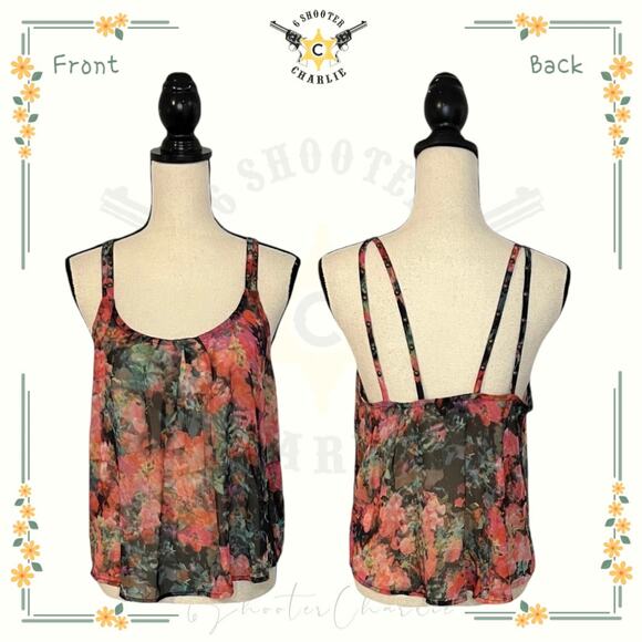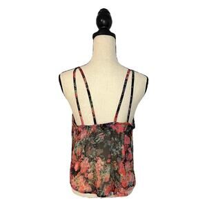 Womens Decree Strappy Tank Top Sheer Floral Print Cami Size Medium