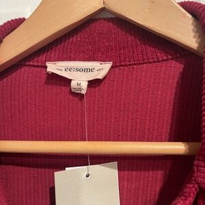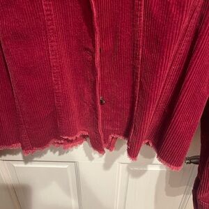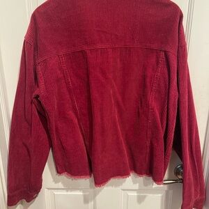 This vibrant red jean jacket from eesome combines the classic appeal of denim with the plush texture of corduroy. Its cropped design and collared neckline make it a stylish addition to any wardrobe, perfect for adding a pop of color to your outfit’s. The Jacket is oversized… perfect for layering.