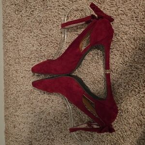 Women's Deep Red Faux Suede Heels Size 41 (US 10.5) (Bin 11)