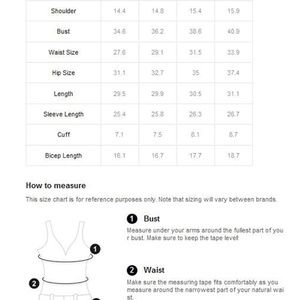 Bust Size: (Small) 34.7 inch; (Medium) 36.0 inch; (Large) 38.7 inch; (X-Large) 41.0 inch