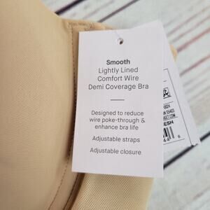 It is new with tags and ready to wear. This bra offers great support and a smooth silhouette under clothing. The demi cup provides just the right amount of coverage while maintaining a natural shape. Perfect for everyday wear!