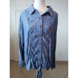 Women’s Democracy blue plaid button down tie front blouse size 2X