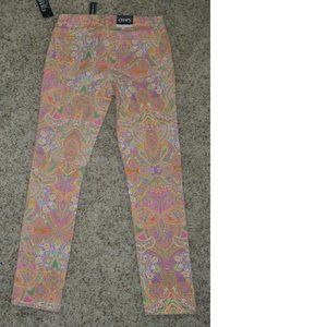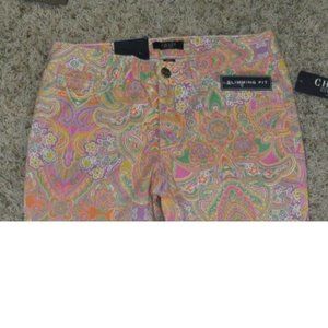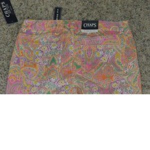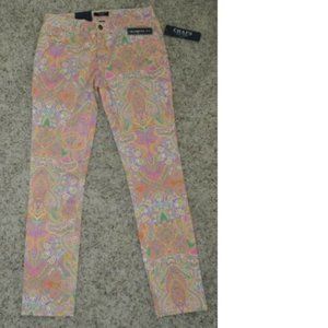 Womens Denim Ankle Jeans Chaps Pink Paisley size 2 Stretch Slim 5 Pocket Pants
