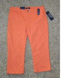 Womens Denim Capris Chaps Orange size 2 Crop Pants Stretch Midrise 5 Pocket