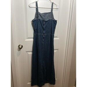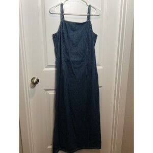 Women’s Denim Dress Ann Taylor 12 Large Spaghetti Strap Long Jean Fall