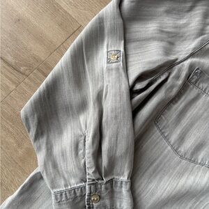 Women's Denim Gray Shirt Button Down Long Sleeve Top SZ L